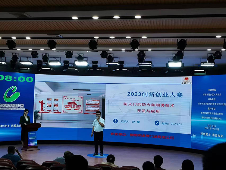 2023年7月10日,第六屆邯鄲市創新創業大賽(肥鄉區)決賽中,邯鄲市金穗門業有限公司參賽項目“防火門的防火防煙霧技術的開發與應用”喜獲三等獎。